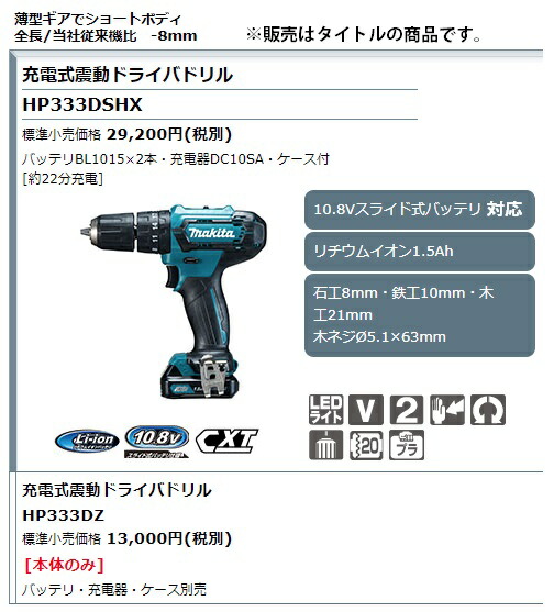 マキタ 充電式震動ドライバドリル HP333DZ 本体のみ 10.8V対応 makita セット品バラシ ケース無し