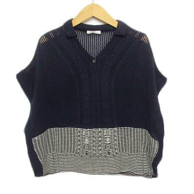 【中古】エルミダ EL MIDAS カットソー ニット 透かし編み ドルマンスリーブ 38 紺 ネイビー レディース