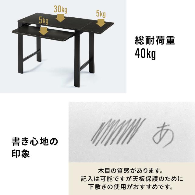 ●天板拡張部分とキーボードスライダーの耐荷重は、どちらも5kgです。
