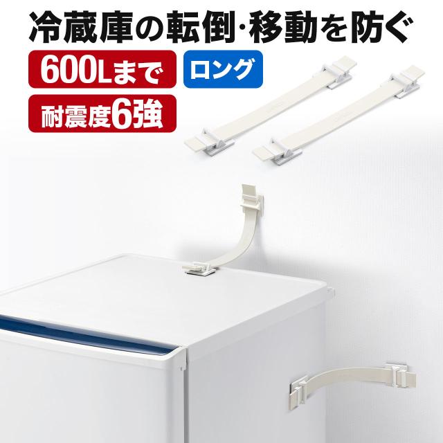 転倒防止ベルト ロングサイズ 冷蔵庫横滑り防止 タンス転倒防止 穴あけ不要 粘着テープ設置 震度6強相当対応[200-QL020]