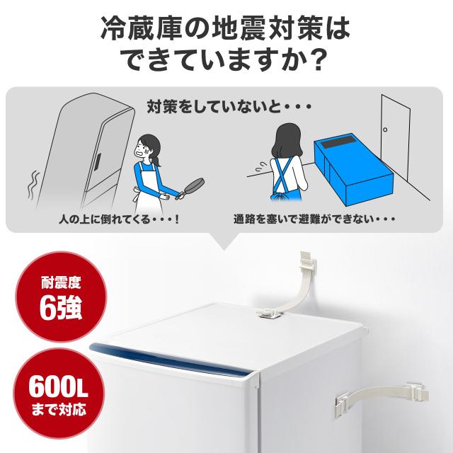 ●冷蔵庫専用の地震対策固定ベルトです。●2本のベルトで、600Lまでの冷蔵庫を固定する事ができます。