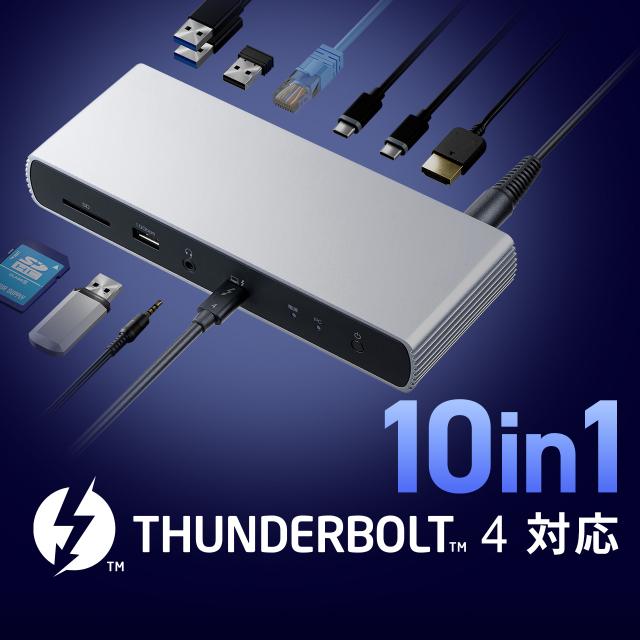 ⇒ご購入の前にご確認下さいThunderbolt4×2ポートで最大2画面出力できるドッキングステーション。TB4ポートはそれぞれ40Gbpsの超高速データ転送に対応。TB4・HDMIポート合わせて最大2画面の映像出力(4K/60Hz)に対応。USB PD(96W)でノートパソコンを充電可能。TB4×2、USB A×4、HDMI、LAN、3.5mmジャック、SDカードスロット、これ一台で各種インターフェースを追加できる。【WEB限定商品】