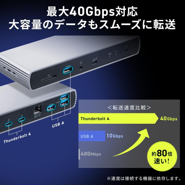 ■最大データ転送速度:40Gbps(Thunderbolt4ポート)、10Gbps(USB Aポート)