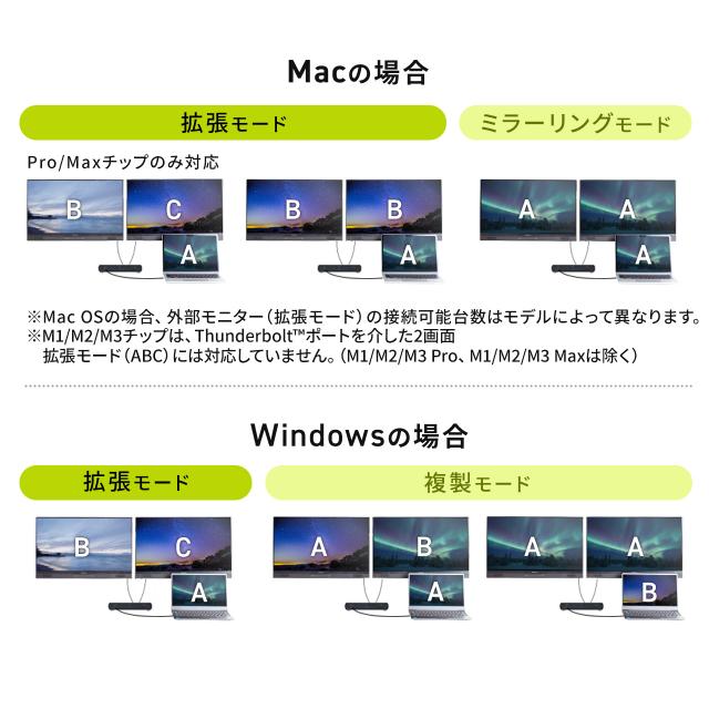 ※M1/M2/M3ベースのMacは、Thunderbolt4ポートを介したデュアルモニターには対応していません。(M1/M2/M3 Pro、M1/M2/M3 Maxは除く)