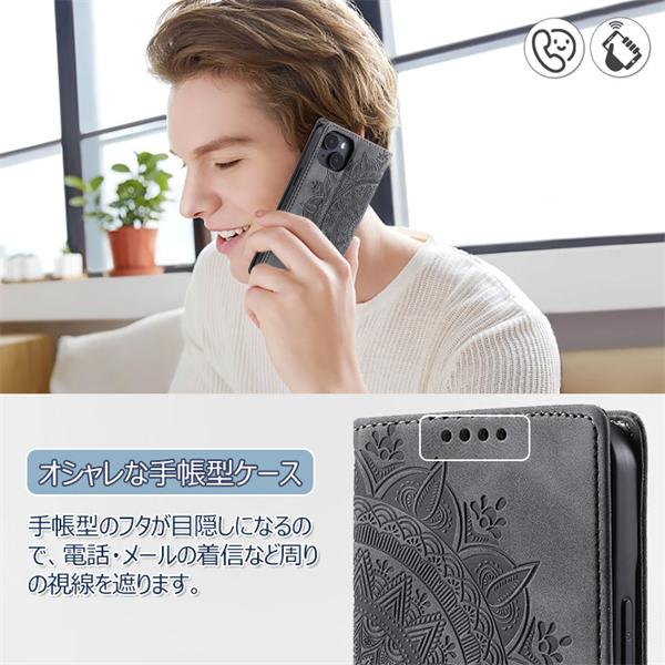 手帳型のフタが目隠しになるので、電話?メールの着信など周りの視線を遮ります。スピーカーホール付きなので閉じたまま通話も可能です。