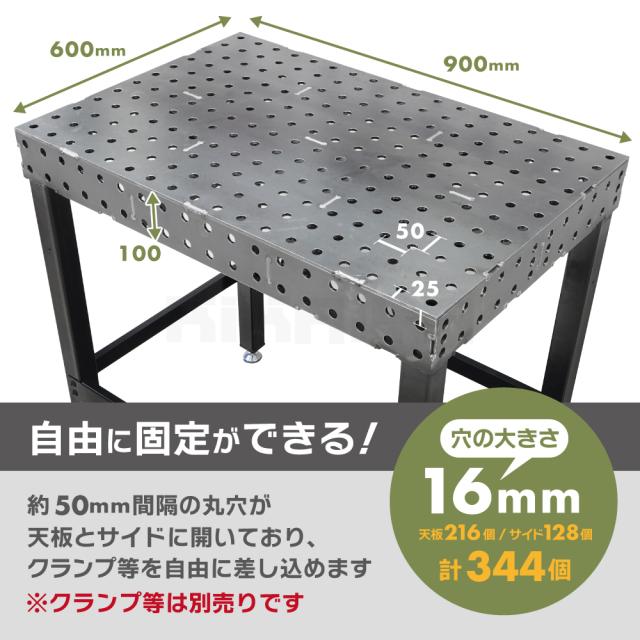溶接テーブル 3D ツールトレイ付 W900×D600×H880mm 天板厚み5mm 16mm穴 溶接 作業台 溶接台 ウェルディングテーブル KIKAIYA