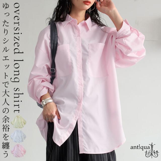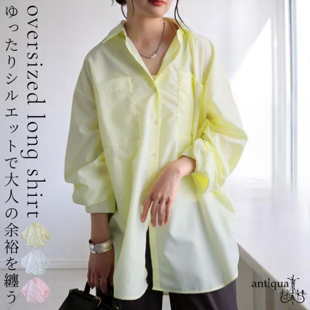 【検索ワード】オーバーサイズシャツ シャツ レディース トップス 長袖 無地 ゆったり ビッグシャツ 前開き ボタン ふんわり ワイド ワイドシャツ ビッグシャツ レギュラーカラー ボリューム袖 ドロップショルダー シンプル きれいめ 上品 モード トレンド ゆったり 胸ポケット 羽織り 着回し ポケット付き オーバーサイズ ビッグシルエット 体型カバー 着痩せ 華奢見え 大きいサイズ 綿 コットン シワになりにくい ホワイト 白 イエロー 黄 ピンク antiqua アンティカ 大人 おしゃれ 10代 20代 30代 40代 50代 60代 春 夏 秋 冬 オールシーズン お洒落 カジュアル かわいい かっこいい あんてぃか