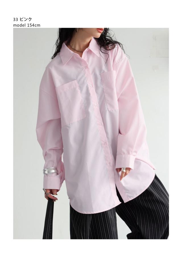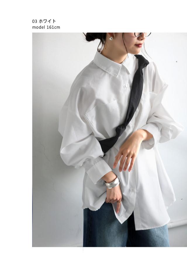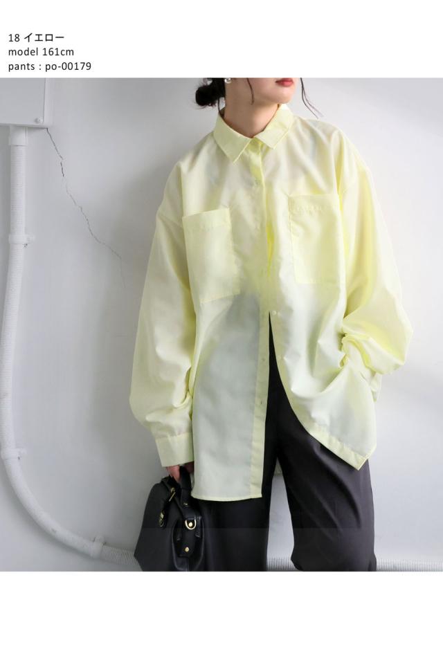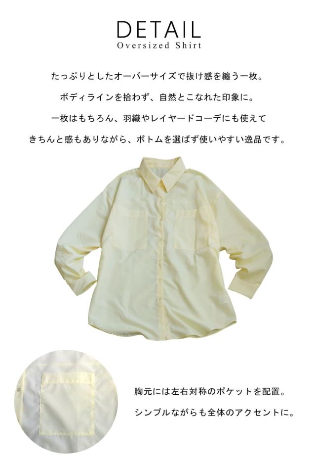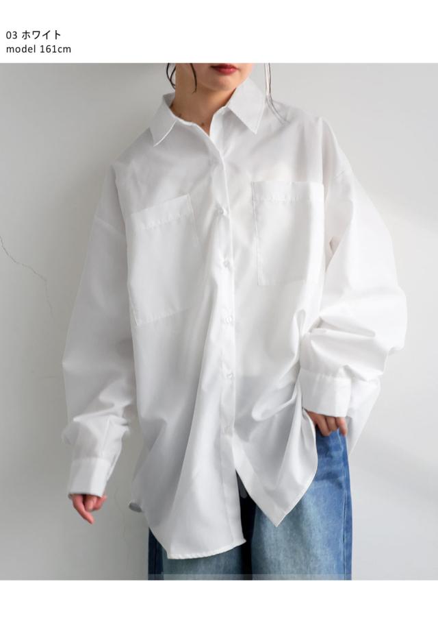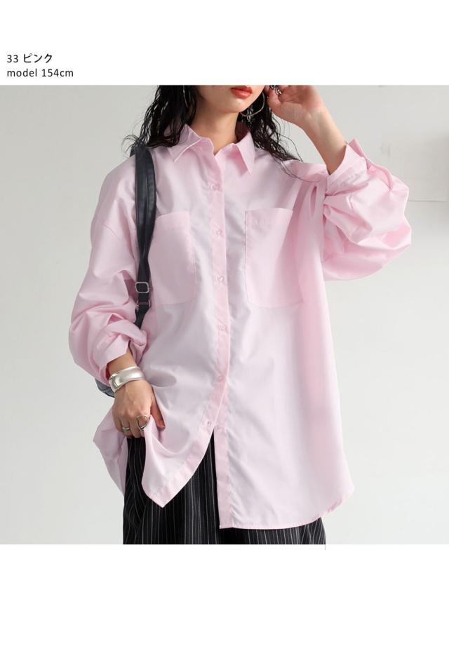ep-00191 無地 ゆったり ビッグシャツ 前開き ボタン ふんわり ワイド ワイドシャツ レギュラーカラー ボリューム袖 ドロップショルダー シンプル きれいめ 上品 モード トレンド