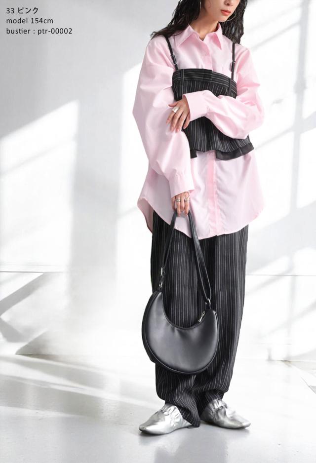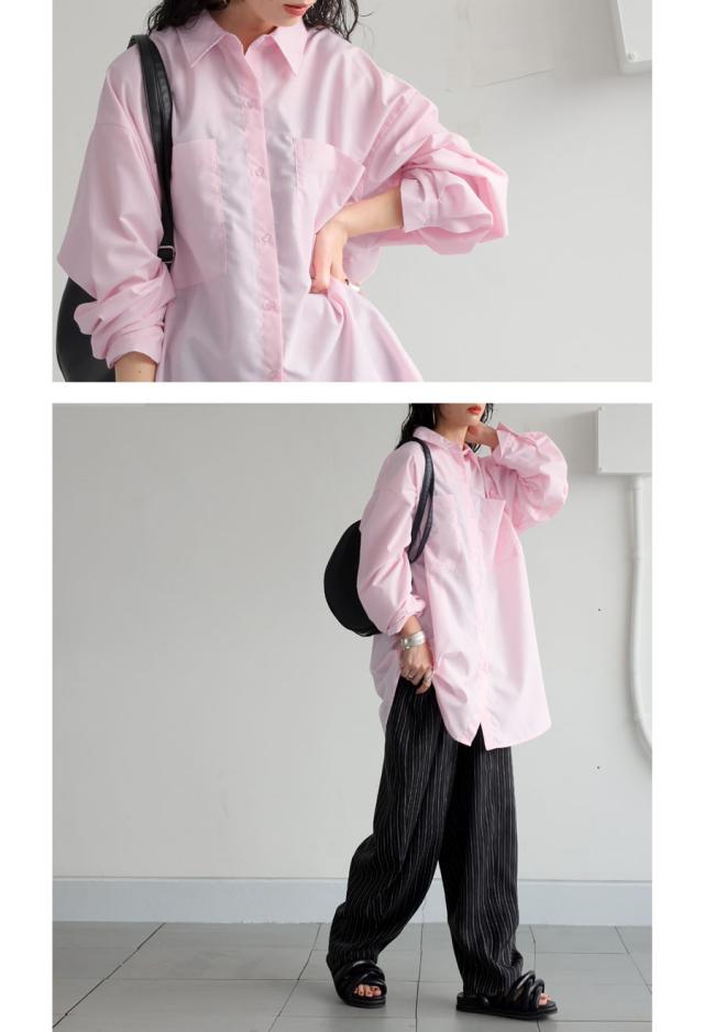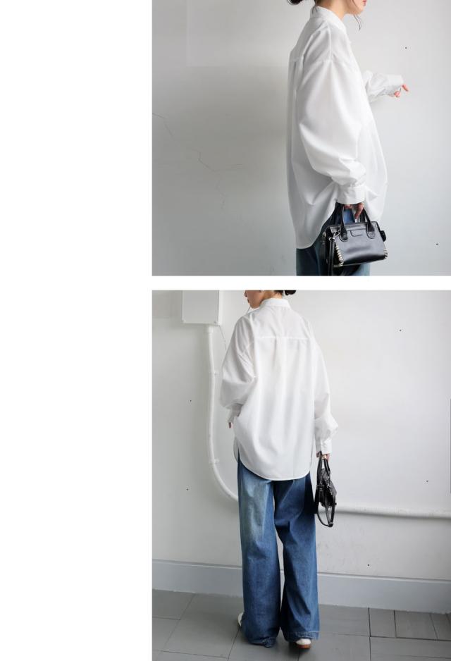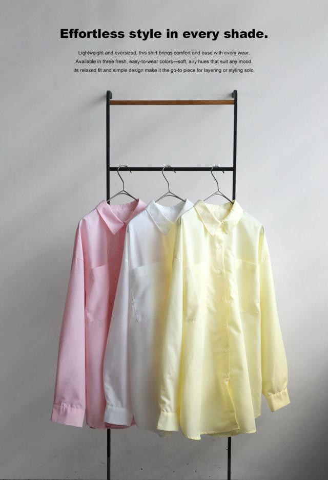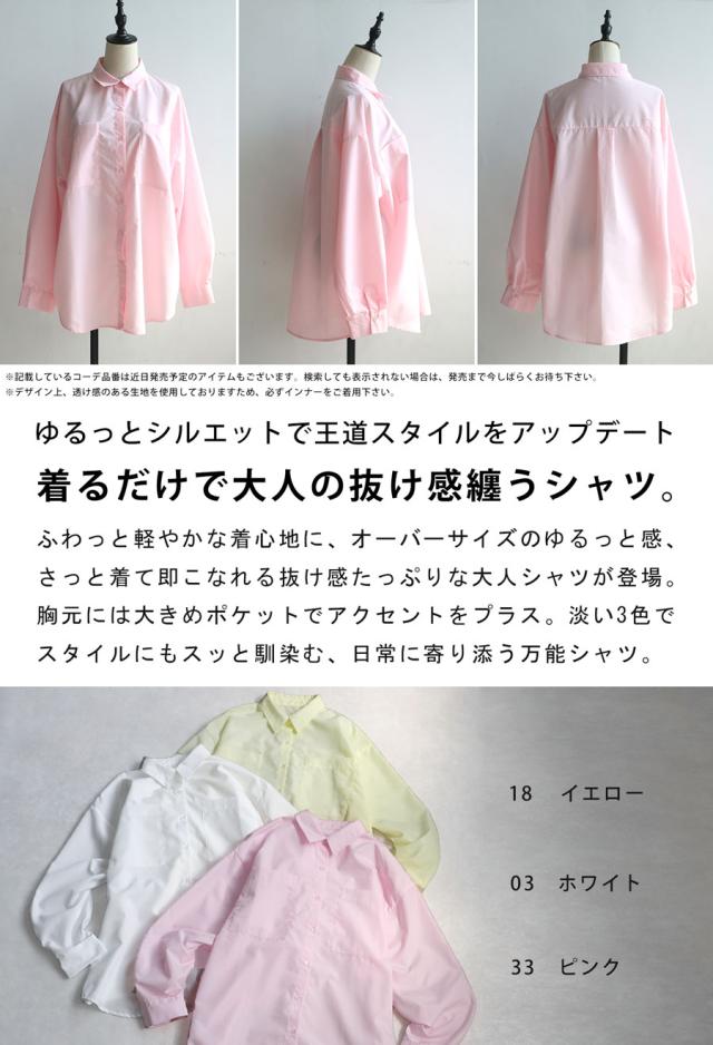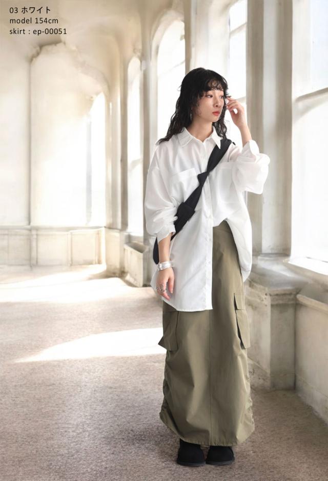 ep-00191 無地 ゆったり ビッグシャツ 前開き ボタン ふんわり ワイド ワイドシャツ レギュラーカラー ボリューム袖 ドロップショルダー シンプル きれいめ 上品 モード トレンド