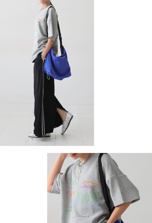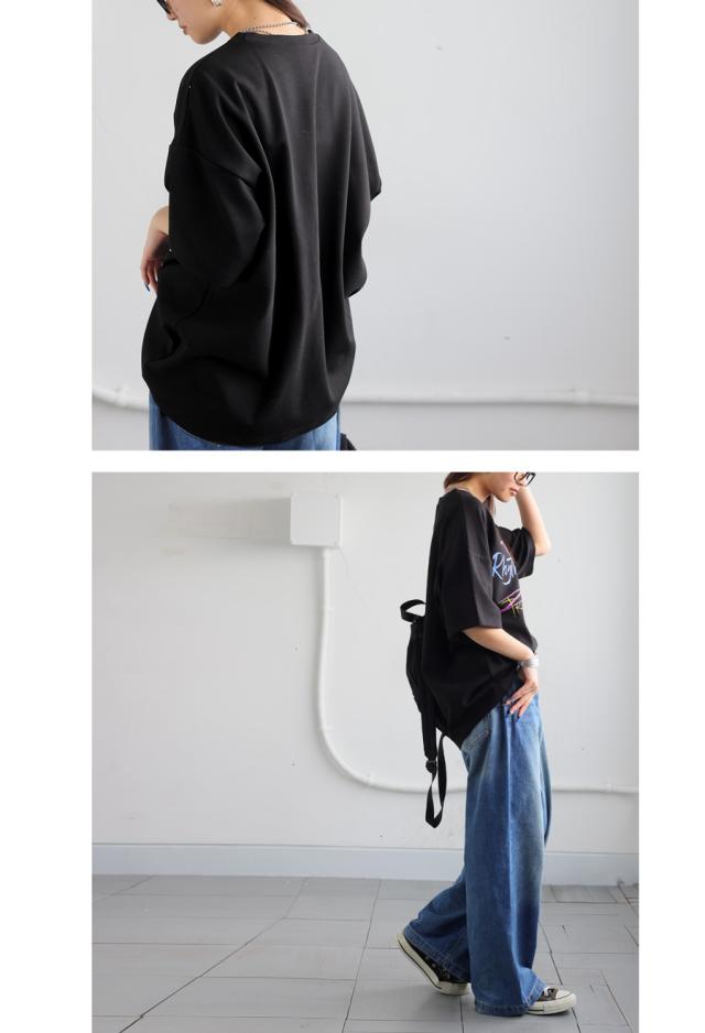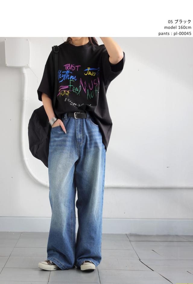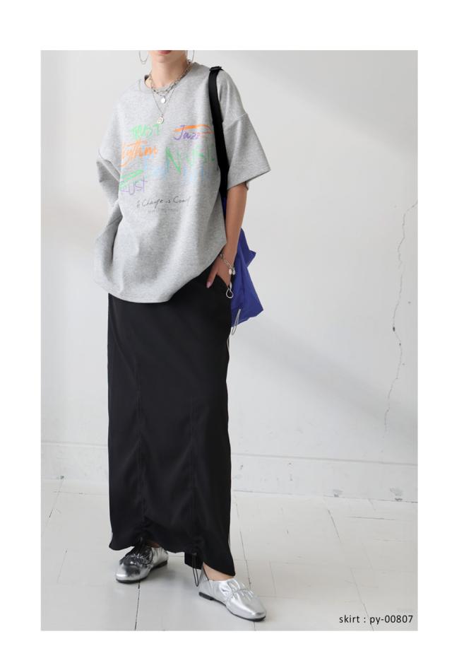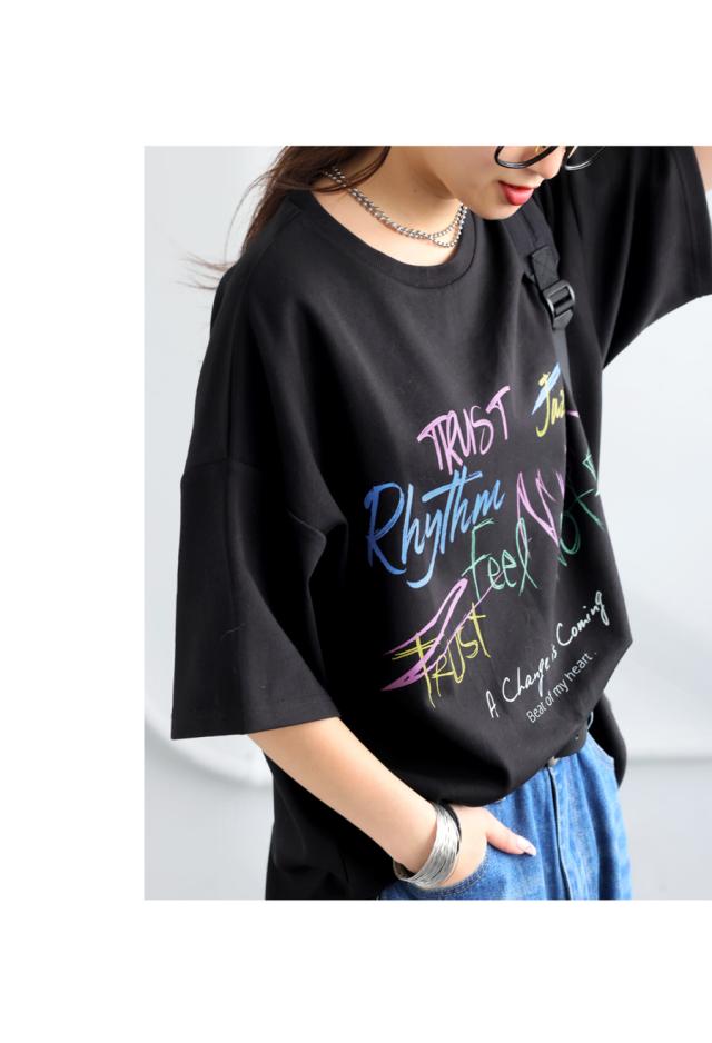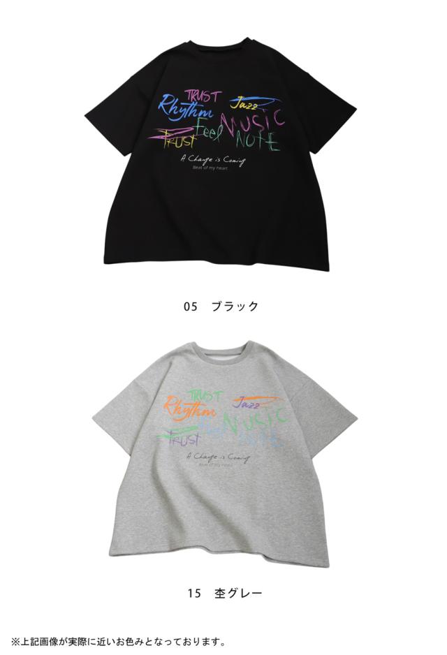 pn-00544 トップス 半袖 丸首 クルーネック プリントTシャツ 落書き風 ポンチ素材 綿 コットン オーバーサイズ ビッグシルエット モード 大人カジュアル スポーティー ストリート