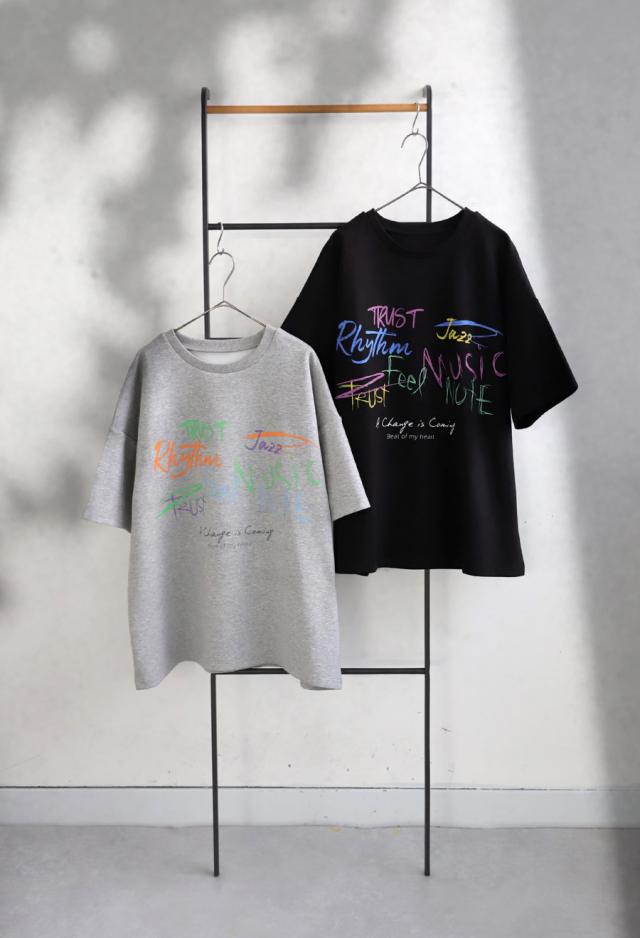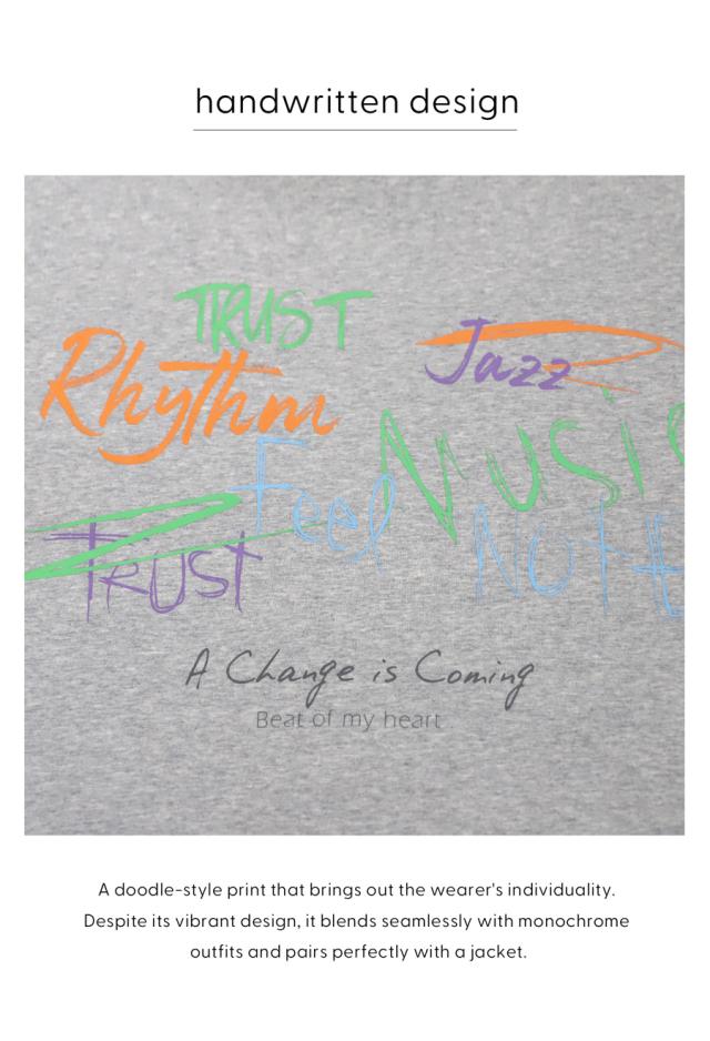 リズミカルな筆跡が、着る人の個性を惹き出す遊び心のあるTシャツ。