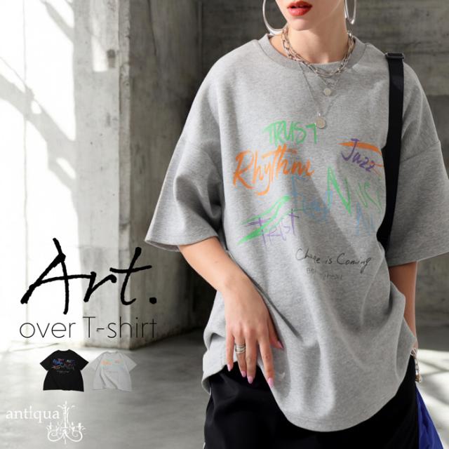 【検索ワード】アートプリントTシャツ カットソー Tシャツ レディース トップス 半袖 丸首 クルーネック ドロップショルダー プリントTシャツ 落書き風 ポンチ素材 綿 コットン 綿混素材 伸縮 ストレッチ シワになりにくい オーバーサイズ ビッグシルエット モード 大人カジュアル スポーティー ストリートロゴTシャツ カラフルプリント デイリー使い ゆったり 体型カバー 着痩せ スポーツミックス ラフスタイル リラックスコーデ トレンドアイテム カジュアルスタイル ファッションアイテム ブラック 黒 杢グレー グレー antiqua アンティカ 大人 おしゃれ 10代 20代 30代 40代 50代 60代 春 夏 お洒落 カジュアル かわいい かっこいい あんてぃか