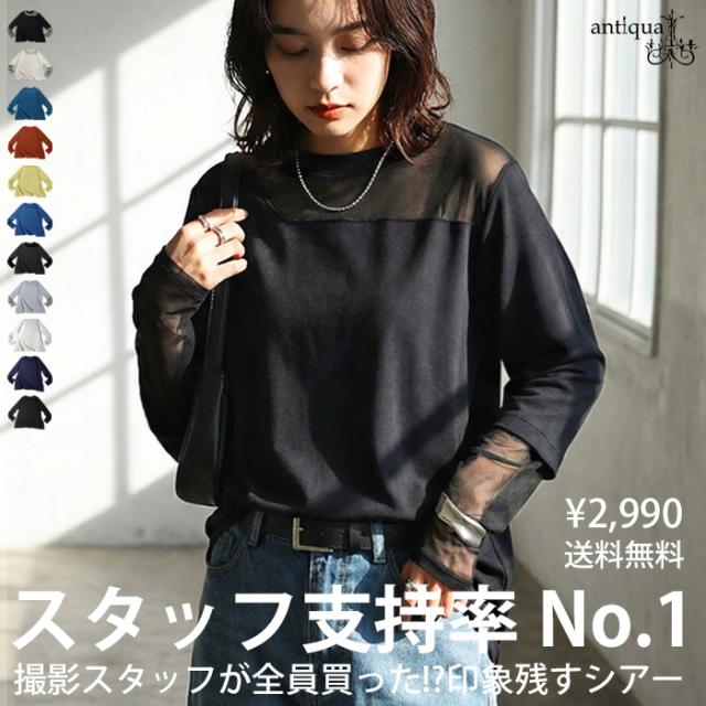 春支度、第2弾。最大15,000円OFFシアー切り替えトップス ロンT レディース 長袖 特別送料無料・再入荷 (100)メール便可