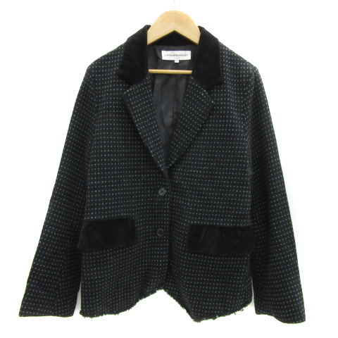 【中古】イーハイフンワールドギャラリー テーラードジャケット 総裏地 ドット柄 ウール 1 黒 緑 レディース