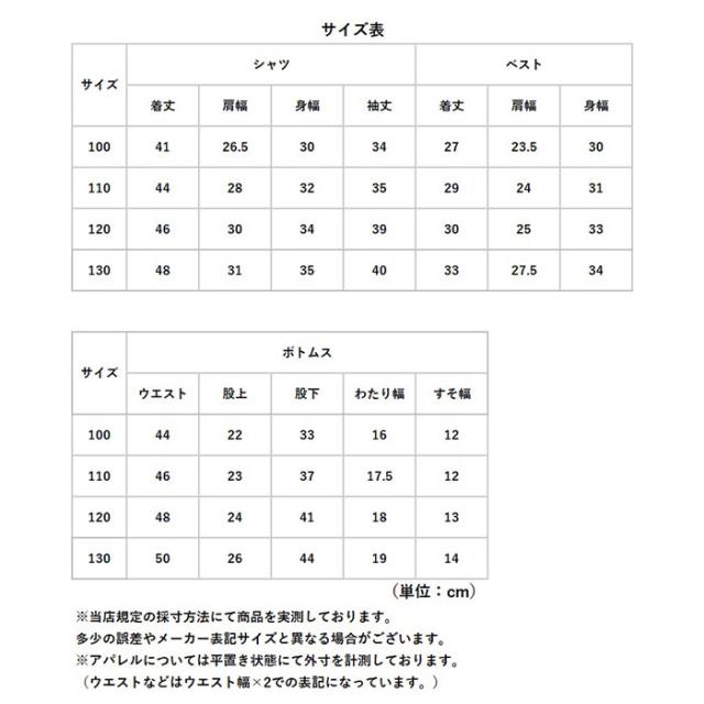| サイズ | [ボーイズ] ・100cm ・110cm ・120cm ・130cm ※サイズについて詳細は、商品画像の中にあるサイズ表をご覧くださいませ。 |