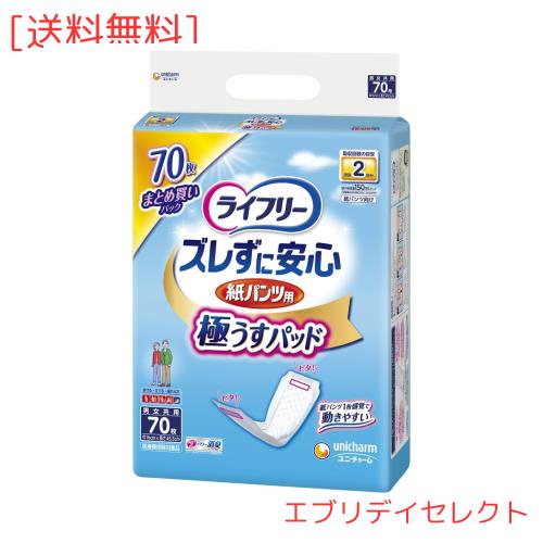 ライフリー パンツ用尿とりパッド ズレずに安心うす型紙パンツ専用 2回吸収 70枚 大人用おむつ 紙パンツ専用パッド