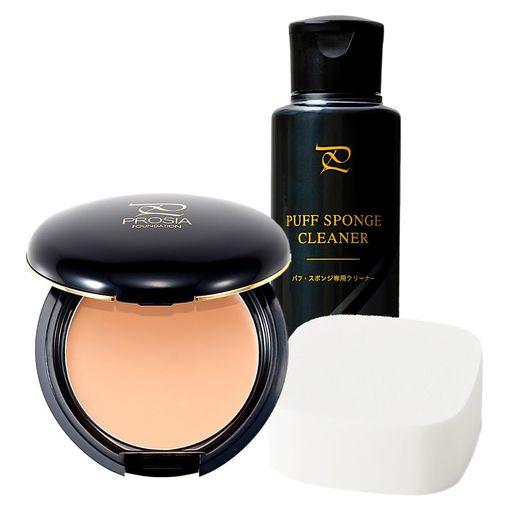 PROSIA(プロシア) ファンデーション+パフクリーナー クリームファンデーション ピンクオークル パフ・スポンジ専用洗剤 日本製 プロシアファンデーション エマルジョン 潤い 艶 ツヤ つや…