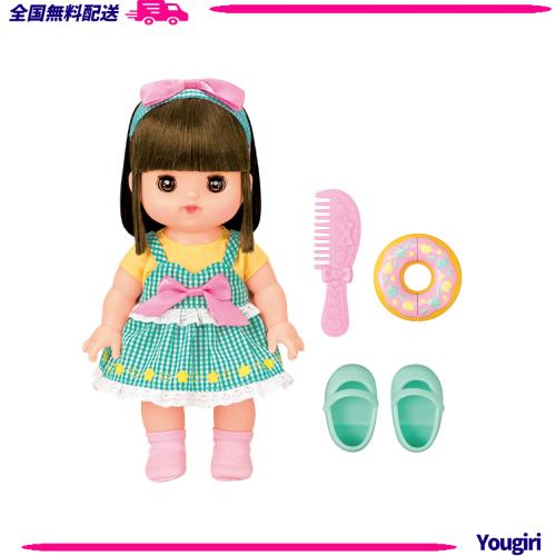 メルちゃんの新しいお友達りこちゃん。 おねんねするとおめめが閉じるよ。 はんぶんこできるドーナツ付き。