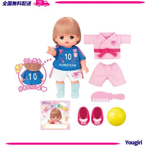 セット内容:ショートヘアメルちゃん本体(はかせるおむつ付)、サッカー風ユニフォーム(上下)、くつした、柔道着風ユニフォーム(上下)、スニーカー、サッカーボール、くし、はじめてブック