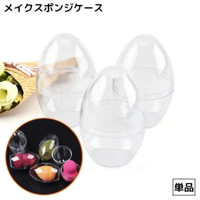 メイクスポンジケース パフケース スポンジホルダー 単品 卵型 タマゴ型 収納 携帯 持ち運び 透明 クリア 立体 3D 旅行