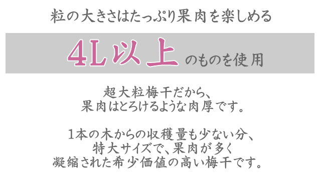大粒紀州産南高梅を使用し塩分8%でハチミツと一緒に漬け込みました。大粒梅干しだから、果肉はとろけるような肉厚です。1本の木からの収穫量も少ない分、特大サイズで、果肉が多く凝縮された希少価値の高い梅干しです。上品に一粒・一粒和紙で包みました。贈り物にいかがでしょうか