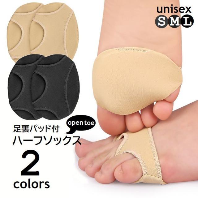 足裏パッド付 ハーフソックス オープントゥ レディース メンズ 靴下 三股 つま先なし 疲れ軽減 足裏保護 ムレ対策 足裏クッシ