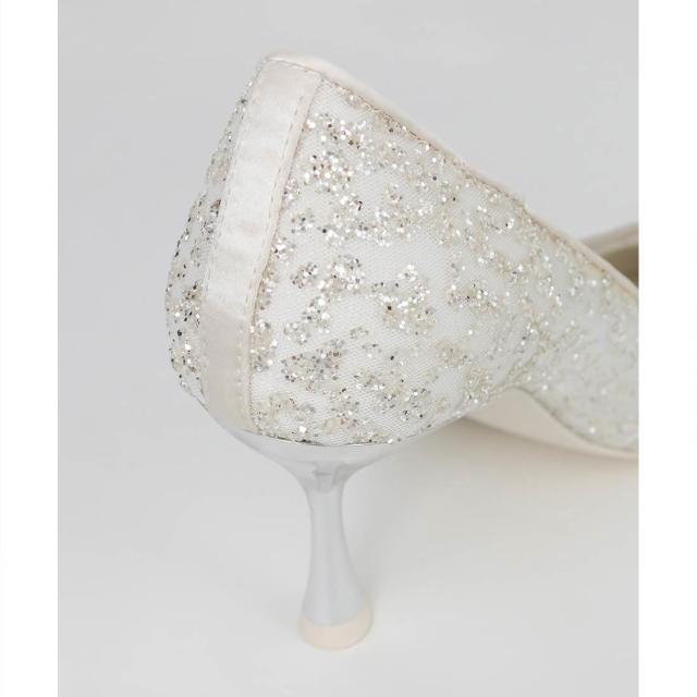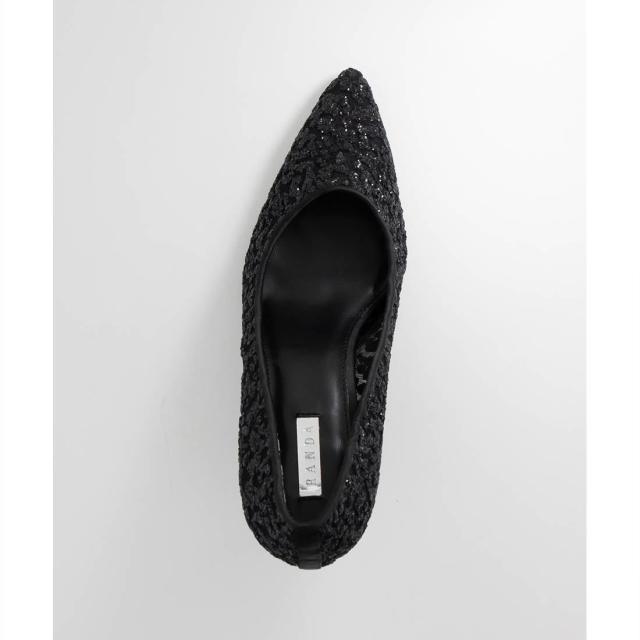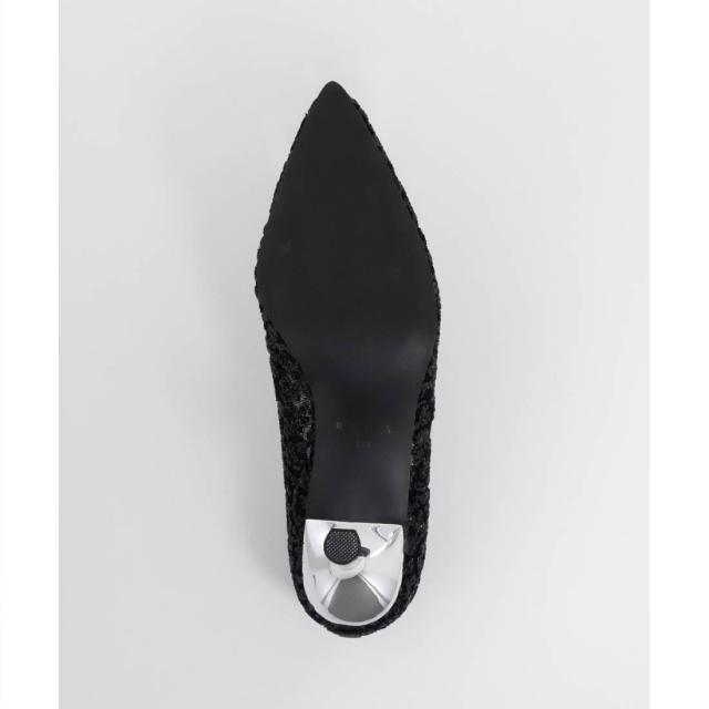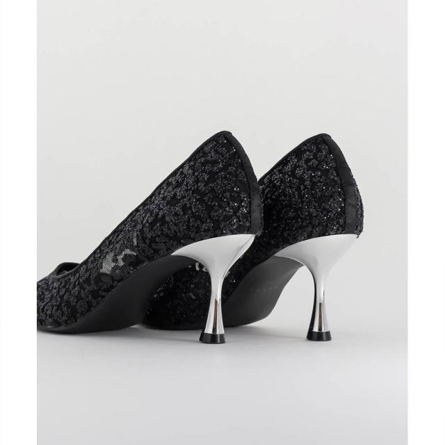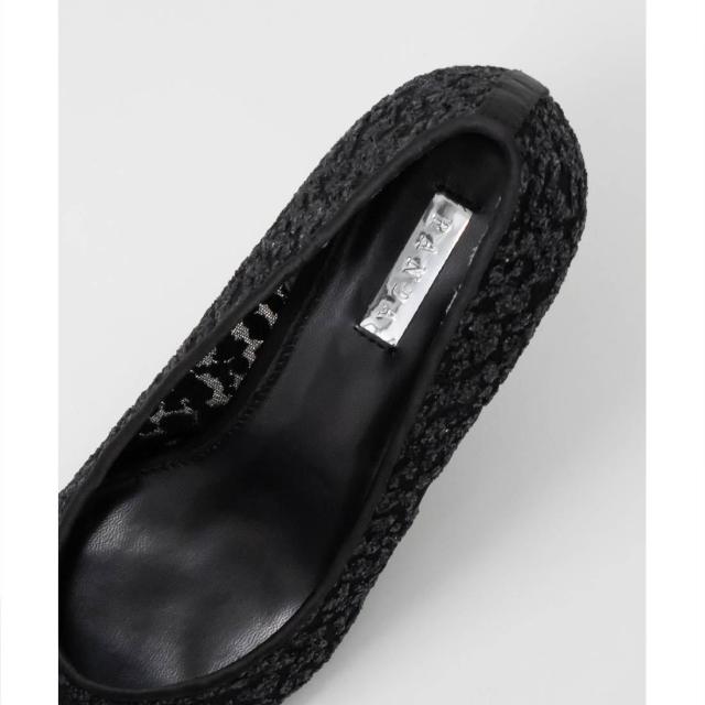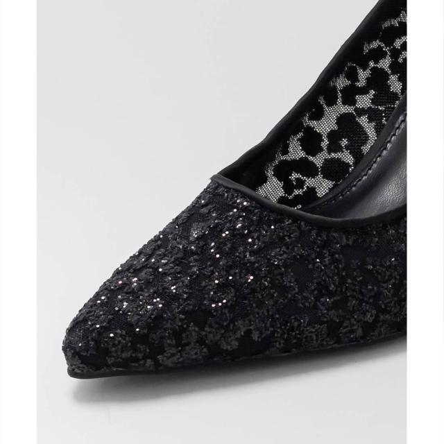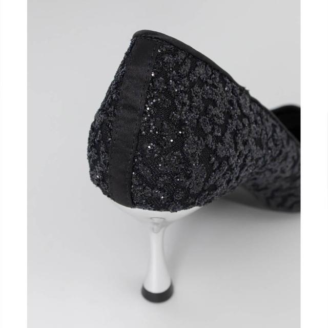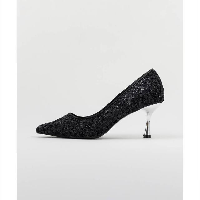 煌めく立体的なグリッターチュール素材を使用したヒールパンプス。