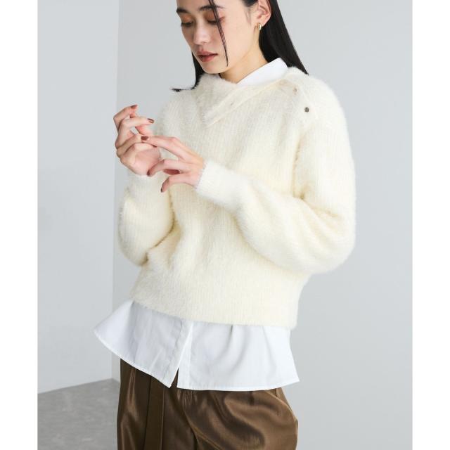 釦は開閉できるのでいくつか開けて衿の様にして着用する着こなしもおすすめ。
