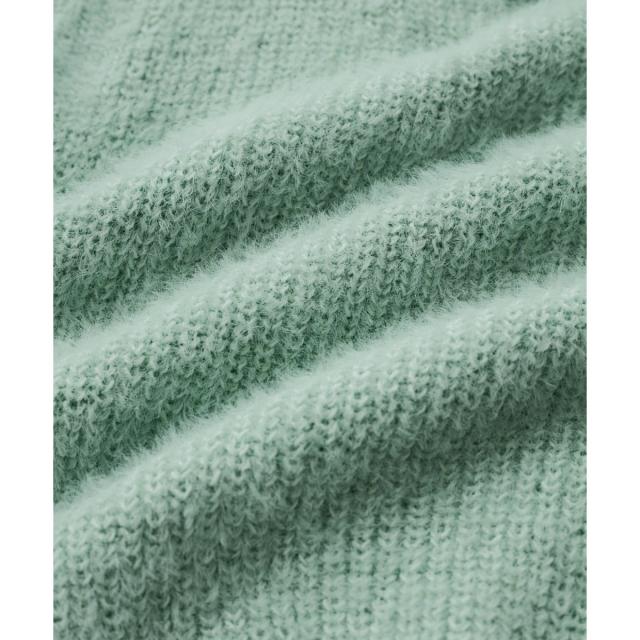太目に編んでいるの糸もポイントです。リブ編みにしているのでテンションがあり着心地◎