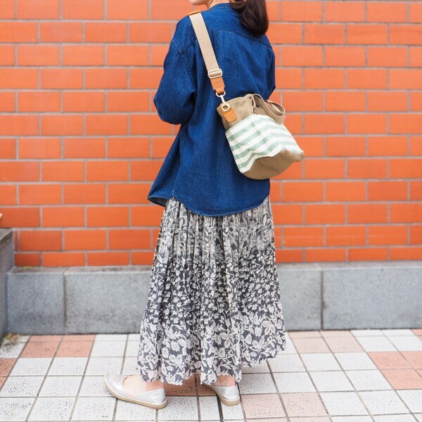 ■素材:本体:ストライプ生地/綿100%、裏地/綿100%、革部分/牛革