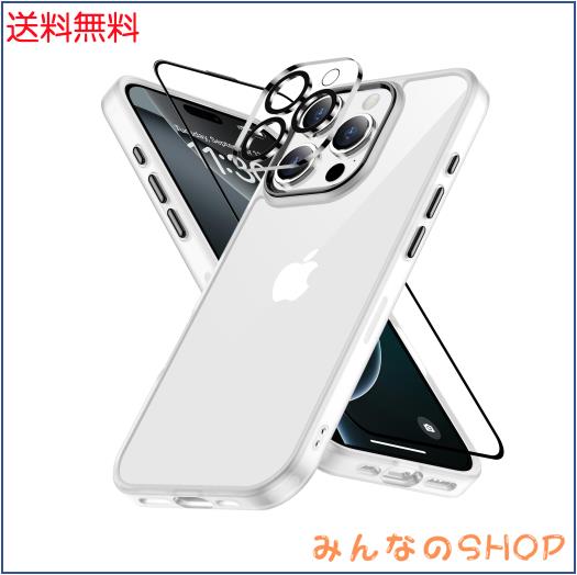 iPhone 16 Pro ケース ホワイト レンズ?ガラス保護付き 黄変防止 アイフォン16 プロケース 耐衝撃 アイフォン 16 ぷろケース 指紋防止
