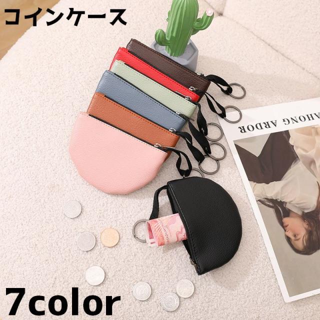 コインケース 小銭入れ レディース 女性 ウォレット ミニ財布 小物入れ 半円 チャック ジッパー シンプル 単色 プレゼント