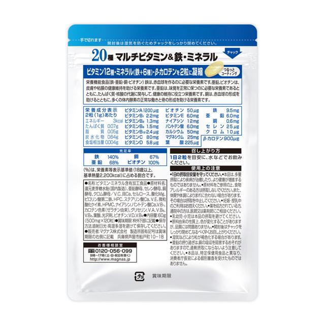 ・2粒に20種の栄養素をギュッと凝縮。栄養素を一つずつ、しっかりこだわりました。