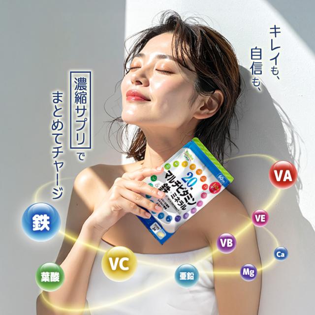 ・日常生活で不足しがちな鉄分を強化配合。1日あたり9.5mgの鉄分が 摂取できます。栄養の底上げを サポートします。忙しい中でも、 必要な栄養素をしっかり 摂って頑張りましょう!