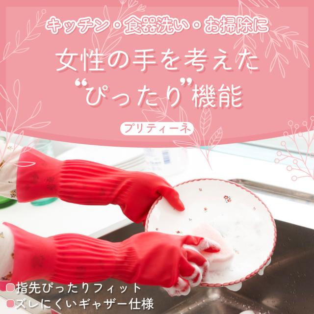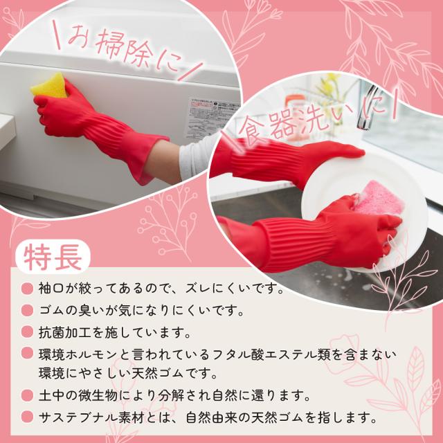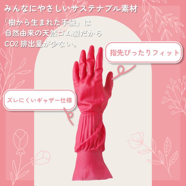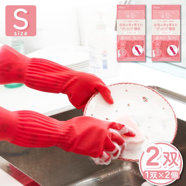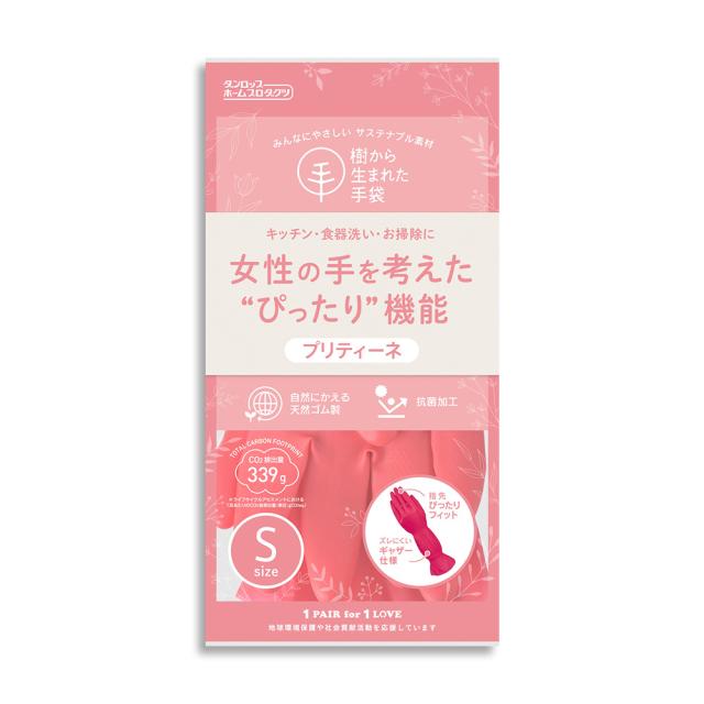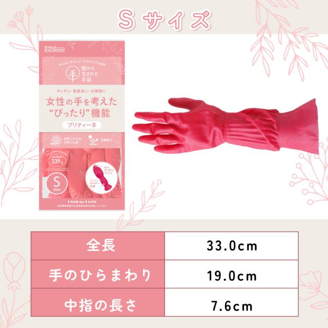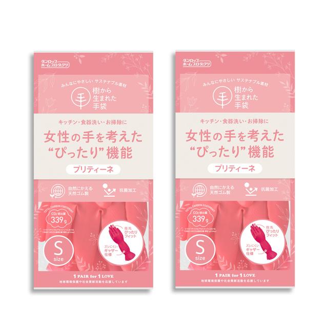 ゴム手袋 プリティーネ 天然ゴム手袋 キッチン 掃除 2双 Sサイズ 抗菌加工 サステナブル素材