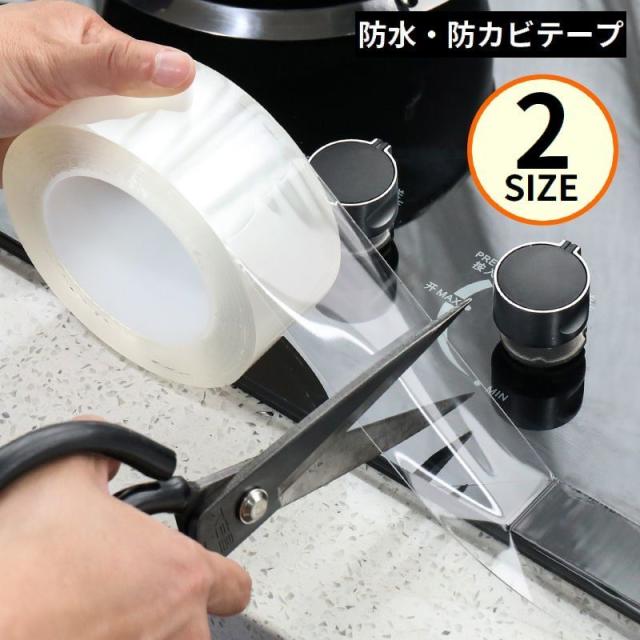 防水テープ 強力粘着 防カビ 油汚れ防止 補修 隙間 透明 クリア キッチン 流し シンク 水回り ガスコンロ IH調理器 配管