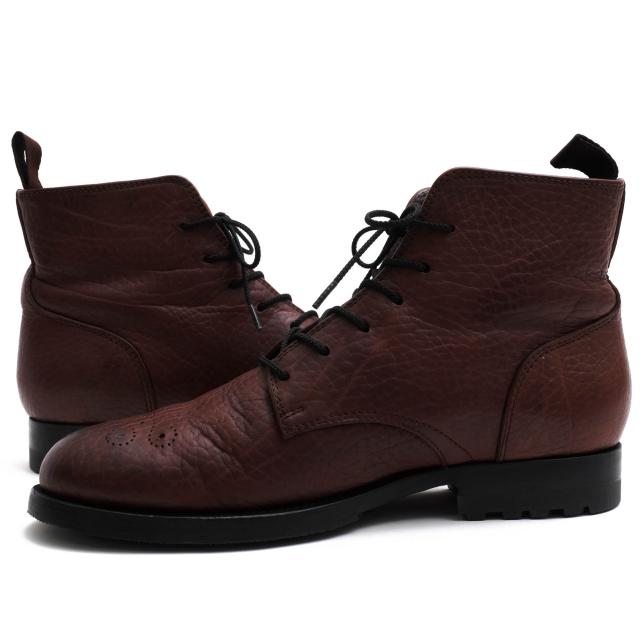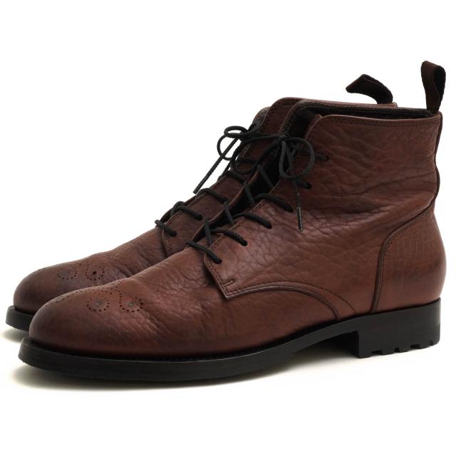 ○ブッテロ BUTTERO 牛革 レースアップブーツ B1646 メダリオン マッケイ製法 シボ革 シュリンクレザー メンズ 【中古】 中古