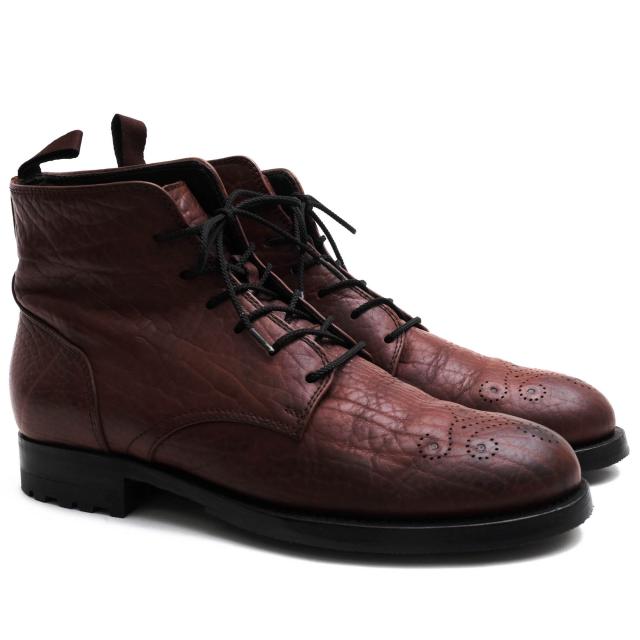 ブッテロのレザーレースアップブーツ。独特の風合いをもつ本革に、トゥ部分に、メダリオンが施されたスタイリッシュな一足。