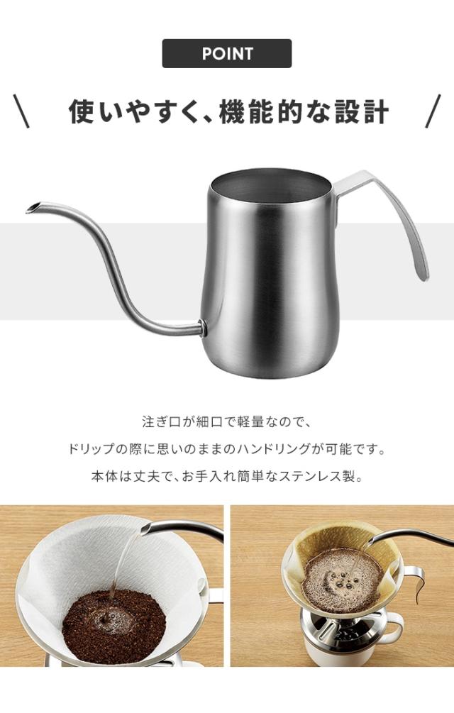 コーヒードリップポット 420ml 細口 ドリップポット ポット ステンレス サテン コーヒーポット 1〜2杯分 直火不可 ステンレスケトル やかん ケトル 新生活 一人暮らし コーヒー器具 お茶用品 ドリップ器具 おしゃれ 便利