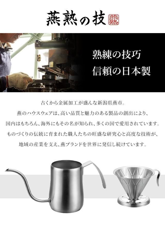 | 燕熟の技 コーヒードリップポット 420ml コーヒードリッパー 日本製 ステンレス サテン仕上げ ドリップポット セット 高品質 キッチン用品 軽量 おしゃれ コンパクト ドリップ器具 燕三条製 モダンデザイン ドリップケトル コーヒードリッパー コーヒーケトル コーヒーやかん コーヒーポット 細口ポット ステンレスポット ハンドドリップ 1~2人用 珈琲用品 アウトドア キャンプ |