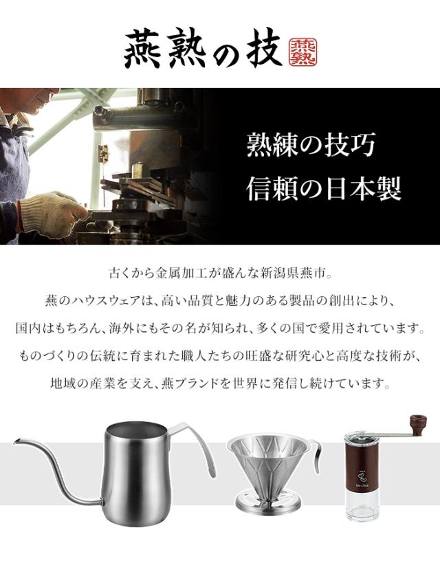 | 燕熟の技 コーヒードリップポット 420ml コーヒードリッパー ミル 日本製 ステンレス サテン仕上げ ドリップポット セット 高品質 キッチン用品 軽量 おしゃれ コンパクト ドリップ器具 燕三条製 直火不可 モダンデザイン ドリップケトル コーヒードリッパー コーヒーケトル ポット コーヒーミル 細口ポット ステンレスポット 3点セット ハンドドリップ 1~2人用 珈琲用品 アウトドア キャンプ |