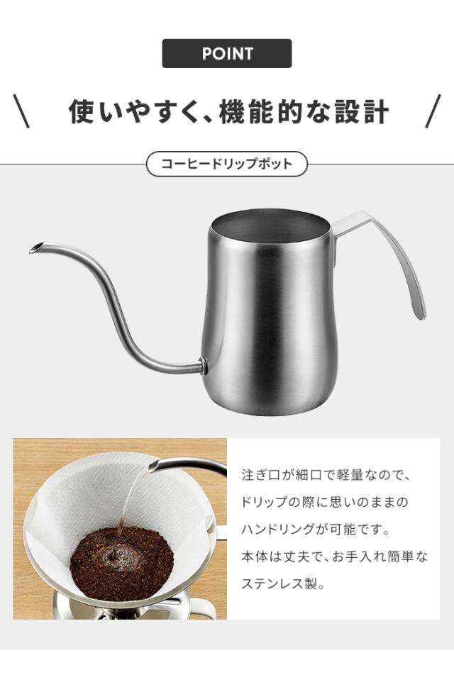 コーヒードリップポット ドリッパー 420ml ミル 3点セット 細口 ポット ステンレス サテン ドリップポット コーヒーポット 直火不可 やかん ケトル 新生活 一人暮らし コーヒー器具 お茶用品 ハンドドリップ おしゃれ