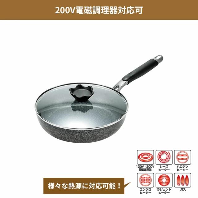 プライマーコートにダイヤモンド粒子を配合した3層ハードコートでキズに強く、金属ヘラも使用OKなガラス蓋付きプライパン。