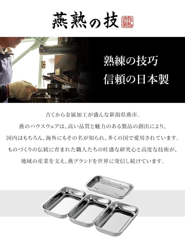 キーワード: 燕熟の技 連結バット 3P 浅型バット アミ付き ステンレス鋼 揚げ物 油きり 日本製 クロムメッキ キッチン用品 バットセット 収納サイズ コンパクト 燕三条