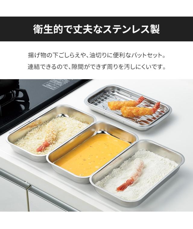 ・揚げ物の下ごしらえや油切りに便利なバットセット