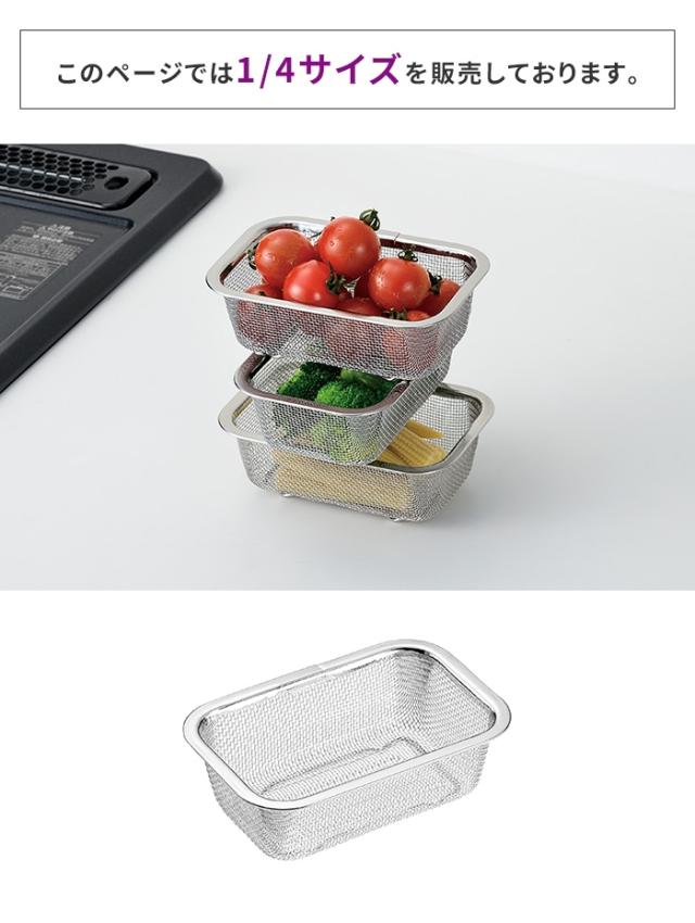 角ザル 1/4サイズ 14.6×9.6×5cm 1個 ざる 角型ザル ステンレス ミニ 水切りザル 日本製 燕三条 ステンレス製 ザル 下ごしらえ 水切り 下処理 コンパクト スタッキング キッチン用品 調理用品