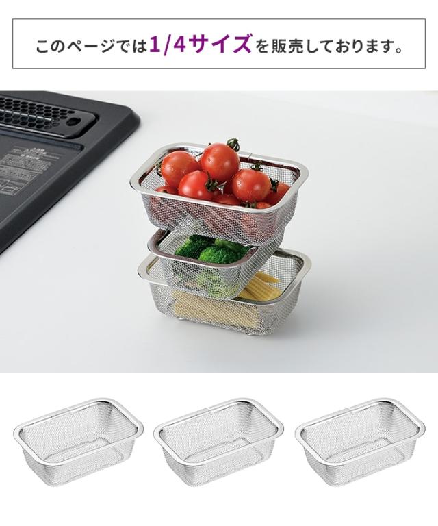 角ザル 1/4サイズ 14.6×9.6×5cm 3個 ざる 角型ザル ステンレス ミニ 水切りザル 日本製 燕三条 ステンレス製 ザル 下ごしらえ 水切り 下処理 コンパクト スタッキング キッチン用品 調理用品