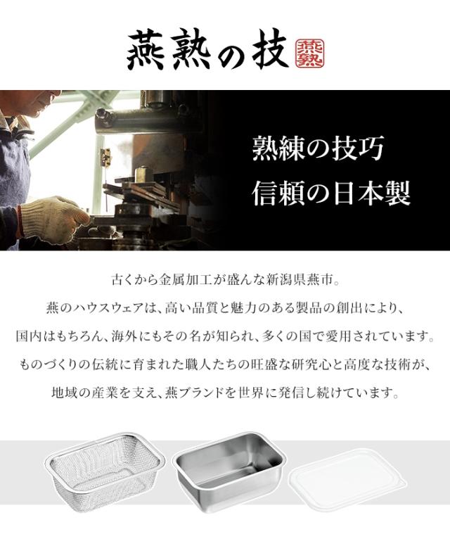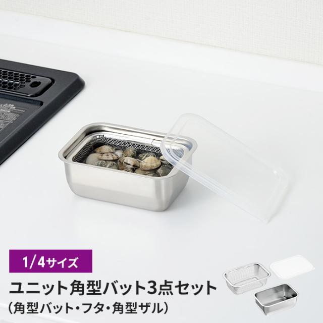 キーワード: 燕熟の技 角型バット ザル 1/4サイズ 蓋付 セット 日本製 ステンレス製 キッチン用品 調理器具 食品保管 収納便利 小型 キッチンバット ユニット角型バット ユニットザル 水切りザル セット 保存容器 冷凍OK 耐久性 錆びにくい 重ねて収納 お手入れラクラク キッチン用品 調理器具 作り置き