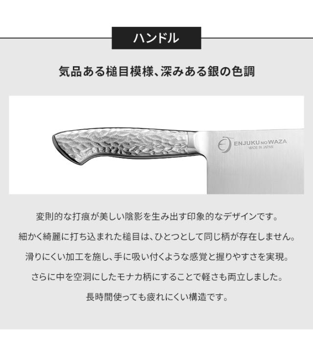 槌目の上に滑りにくい加工を施し、手に吸い付くような感覚と握りやすさを実現。