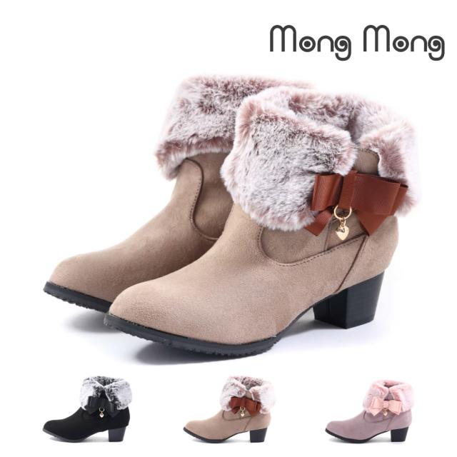 キッズ ジュニア 女の子 ブーツ 6554 ショートブーツ ローヒール かわいい おしゃれ ファー もこもこ 大人っぽい 歩きやすい 疲れにくい 脱げない 滑りにくい Mong Mong モンモン